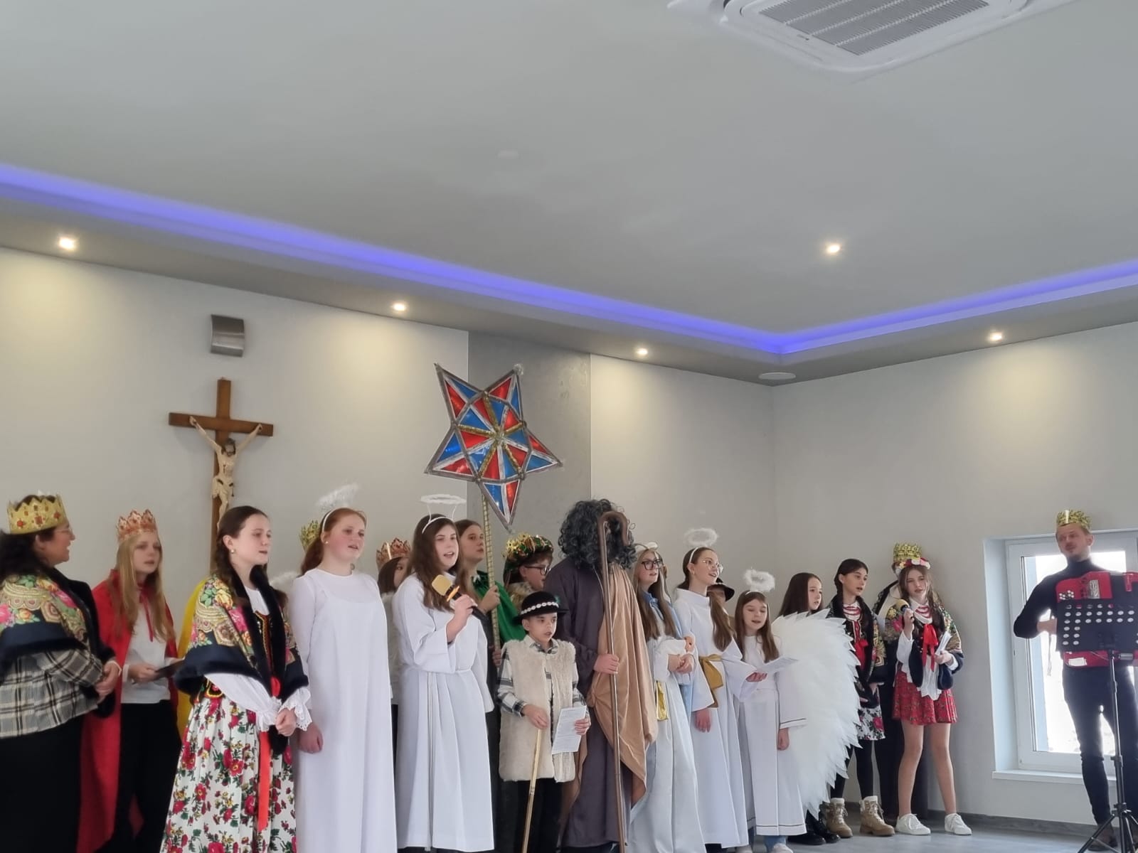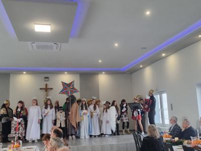 Szkolne Koło Caritas od początku roku szkolnego działa bez wytchnienia. Z radością dzieli się swoim czasem i talentami z tymi, którzy czekają na pomocną dłoń. Tym razem nasi Wolontariusze w czwartek 4 grudnia uczestniczyli w gminnym spotkaniu świątecznym dla podopiecznych GOPS - u Gminy Tomice. Spotkanie zostało zorganizowane w remizie OSP Lgota. A skoro wielkimi krokami zbliżają się Święta Bożego Narodzenia, Wolontariusze wcielili się w role Kolędników. Piękne stroje postaci biblijnych, anielskie śpiewy kolęd i wyjątkowe recytacje poezji bożonarodzeniowej wprowadziły wszystkich w cudowny świąteczny klimat. Kolędnikom przygrywał niezawodny nasz dyrektor Pan Daniel Mruczek, któremu serdecznie dziękujemy. Oczywiście nie zabrakło świątecznych życzeń, które z serca złożyliśmy obecnym podczas spotkania Seniorom oraz Gościom, na czele z Wójtem Gminy Tomice Panem Witoldem Grabowskim i Kierownikiem GOPS Tomice Panią Jadwigą Kwarciak wraz ze współpracownikami.