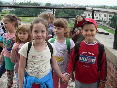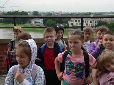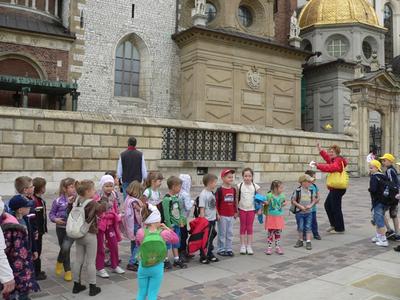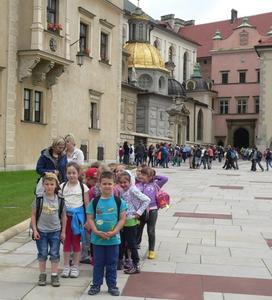 Dnia 12 czerwca 2013 roku zerówka (sześciolatki) wraz z wychowawczynią i kilkorgiem rodziców wybrała się na wycieczkę do Krakowa. Baliśmy się, czy pogoda dopisze, ale okazało się, że niepotrzebnie się martwiliśmy, bo nie spadła na nas nawet kropla deszczu. Pierwszym punktem naszej wycieczki był Zamek Królewski - Wawel. Obejrzeliśmy tę ogromną, królewską budowlę i z radością poszliśmy do Smoczej Jamy. Wąskimi, krętymi schodami zeszliśmy odważnie do mrocznej jaskini. Po wyjściu ze Smoczej Jamy obowiązkowo zaopatrzyliśmy się w pamiątki. Następnie pojechaliśmy naszym busem do ZOO. Oglądaliśmy prawdziwe dzikie zwierzęta jak lwy, tygrysy, wilki. Nie zabrakło też surykatek i innych ciekawych mniejszych zwierząt. Po chodniku chodził paw, który pokazał nam swoje wdzięki rozkładając szeroko ogon. Bardzo podobały się nam wielkie słonie. W Mini ZOO mogliśmy sami karmić marchewką zwierzęta takie jak osły, żółwie, świnki wietnamskie. Wycieczka była bardzo ciekawa i długo pozostanie w naszej pamięci.