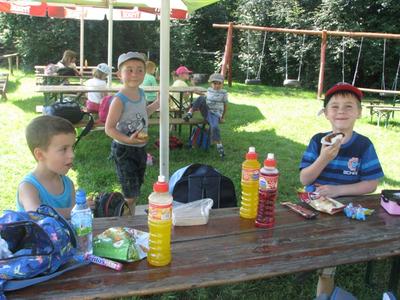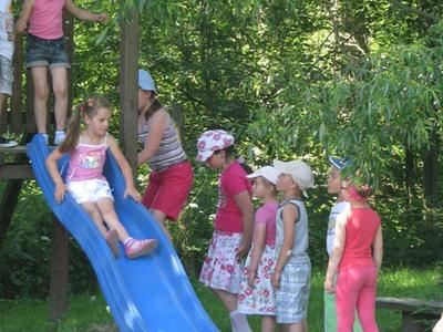 Pod koniec roku szkolnego, tak jak inne oddziały i klasy, również dzieci 5-cio letnie wraz z wychowawczynią i opiekunami odbyli wycieczki klasowe. Jedną z nich była wyprawa do teatru w Bielsku - Białej, a druga do Mini Zoo w Inwałdzie. Chociaż temperatura powietrza była bardzo wysoka, to jednak przejazd ciuchcią ze szkoły do Inwałdu dzieciom to zrekompensował. Z tego powodu, że duża ilość dzieci była nieobecna w szkole z powodu choroby, do naszej grupy dołączyły dzieci z innych klas.Wszystkie bardzo zadowolone, pełne wrażeń i wspaniałych wspomnień wróciły do domów z obydwu wycieczek.