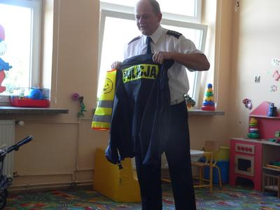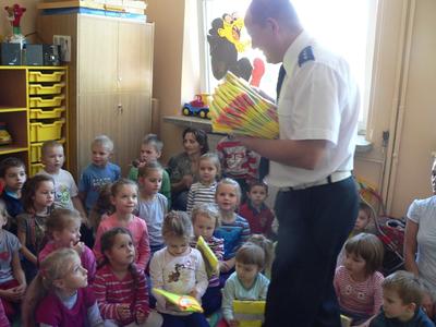 W dniu 22 pażdziernika 2013 r. w trosce o bezpieczeństwo dzieci na drodze odbyło się w naszej szkole spotkanie z Policjantem pod hasłem „Widoczny Przedszkolak”. Pan Policjant w ciekawy sposób opowiadał, jak należy zachowywać się na drodze, jakie czyhają na dzieci niebezpieczeństwa i co zrobić, aby lepiej być widocznym na drodze. Następnie wręczył dzieciom kamizelki odblaskowe ufundowane przez Wójta Gminy Tomice. W nich dzieci będą mogły bezpiecznie poruszać się po drodze w czasie wycieczek i spacerów.