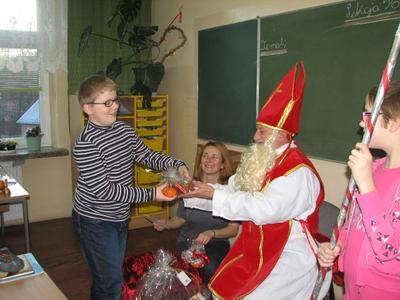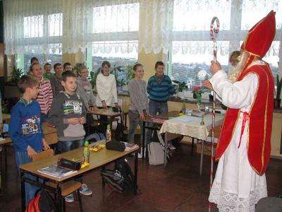 W piątek 6 grudnia od samego ranka nasze serca mocniej biły, gdyż oczekiwaliśmy spotkania ze Św. Mikołajem. Nie musieliśmy długo czekać. Wraz z pierwszym dzwonkiem rozbrzmiał w naszych uszach też i inny dzwonek, był bardziej wdzięczny, a dzwonił tym głośniej, im bliżej był drzwi sal lekcyjnych. Z radością powitaliśmy Gościa w każdej klasie. Spotkanie upływało w radosnej i jakże miłej atmosferze. Oczywiście, Św. Mikołaj wskazał nam wiele cennych rad na przyszłość, umocnił w dobrych postanowieniach, a co najważniejsze wręczył paczki z łakociami. Oprócz nich zaprosił uczniów klas IV - VI do kina w Wadowicach, a klasy I - III do kina w Krakowie. Radości było co niemiara. Choć chcieliśmy, aby spotkanie ze Św. Mikołajem trwało dłużej, to jednak byliśmy bardzo wyrozumiali, bo przecież wszystkie dzieci czekały w tym dniu na wyjątkowego Gościa./ebk/