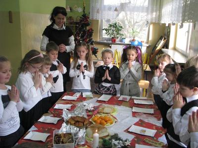 W piątek 20 grudnia 2013 roku spotkaliśmy się ostatni raz w gronie klasowym z wychowawcami przed Świętami Bożego Narodzenia. Było to zupełnie inne spotkanie. Przy stole wigilijnym, nakrytym białym obrusem, poczuliśmy się jak w gronie rodzinnym. Składanie życzeń, łamanie się opłatkiem, wspólne rozmowy o tradycjach świątecznych i oczywiście śpiew kolęd. Piękny nastrój i niezapomniane chwile./ebk/