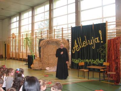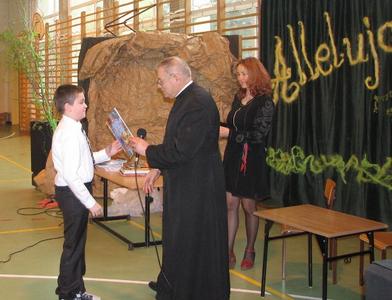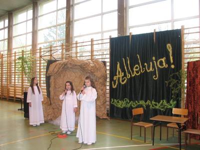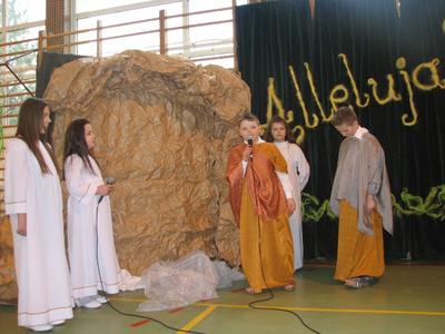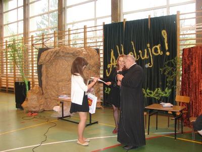 Tak można powiedzieć o apelu wielkanocnym, który przygotowali uczniowie klas III pod opieką pani Doroty Klaja. Wprowadzili nas w nastrój wielkanocny. Po części artystycznej nastąpiło wręczenie nagród min. za Międzynarodowy Konkurs Plastyczny Mieszkam w Beskidach, X Międzyszkolny Konkurs Wiedzy o Błogosławionym Janie Pawle II, Gminnym Konkurs Pisanek oraz za Szkolny Konkurs Palm. Ks. Proboszcz zabierając głos, serdecznie podziękował Małym Aktorom i Pani Dorocie za przygotowaną piękną część artystyczną. Wyraził wdzięczność wobec dzieci za udział w konkursach, pogratulował osiągniętych sukcsów i wręczył nagrody. Na zakończenie przyjęliśmy z serca płynące życzenia wielkanocne.
