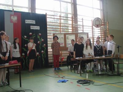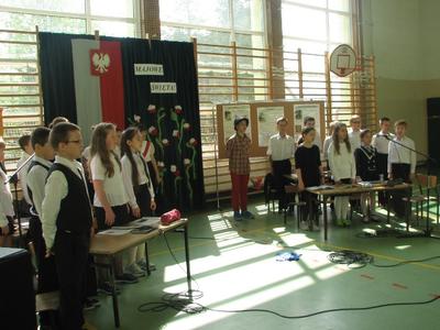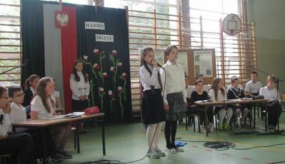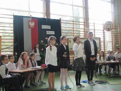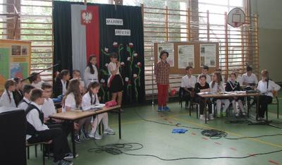 Miesiąc maj niesie ze sobą wielkie wydarzenia, które przeżywamy jako święta państwowe, religijne, ale i także ważne rocznice.W środę 30 kwietnia podczas akademii uczniowie klasy IV pod opieką wychowawczyni Pani Beaty Kokoszka przygotowali piękną część artystyczną upamiętniając te wielkie Majowe Święta. Oto fototelacja z tej jakże patriotycznej i radosnej akademii.